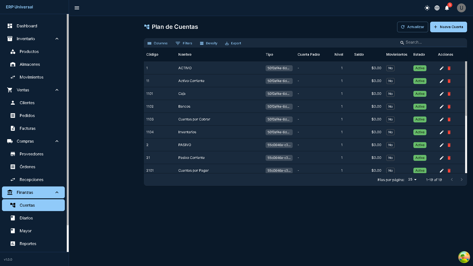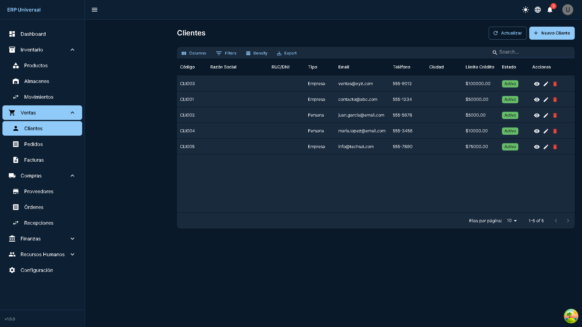 Sistema ERP Universal, una solución empresarial completa desarrollada con tecnologías modernas que permite gestionar todos los aspectos del negocio. Compatible con PC y dispositivos móviles.
