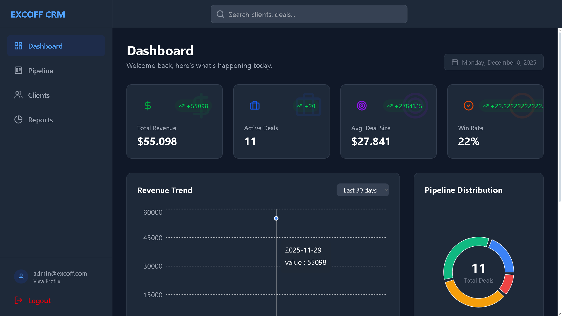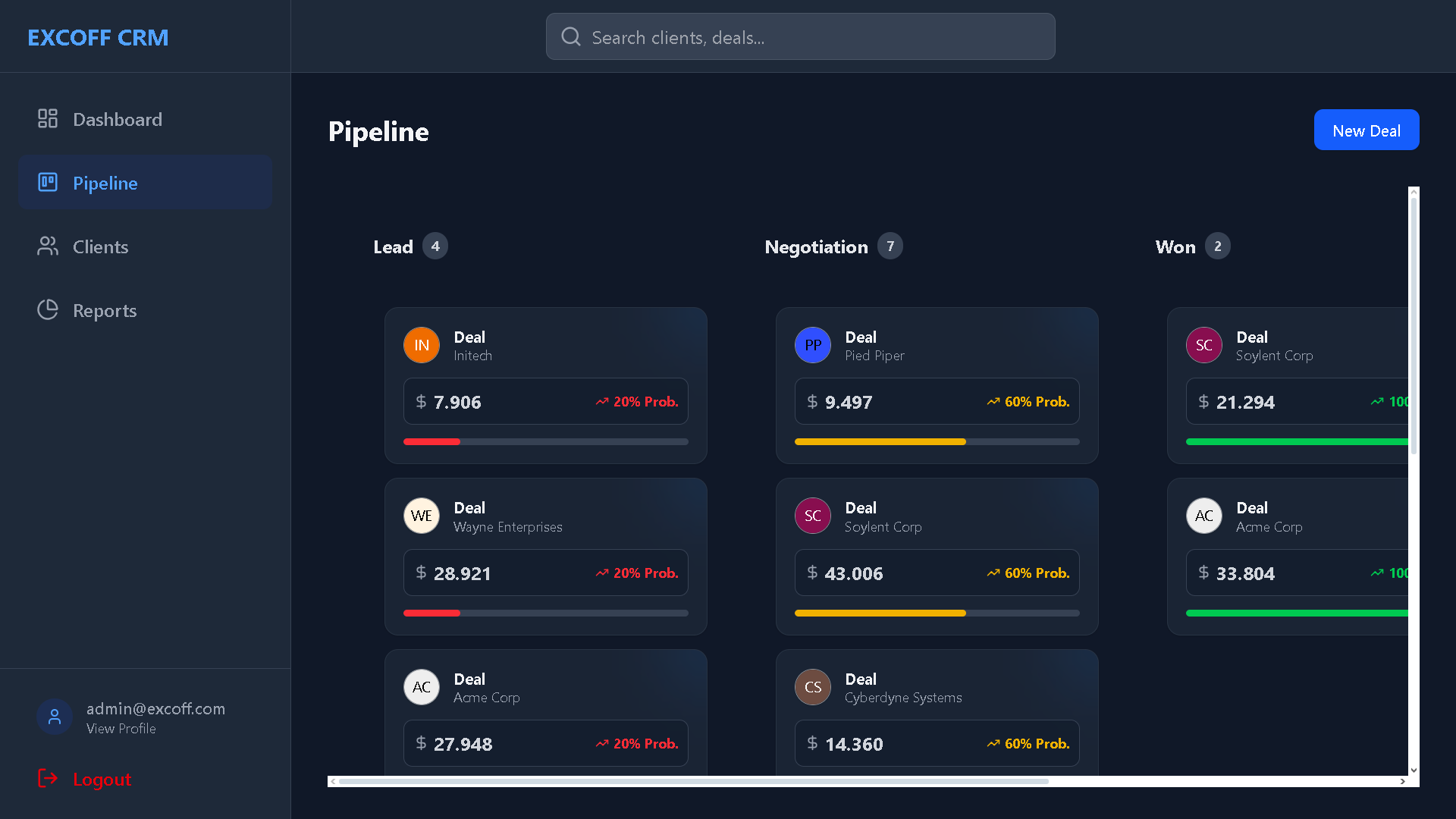 Desarrollo de EXCOFF CRM, una plataforma web centralizada que automatiza la entrada de datos y ofrece visualización en tiempo real mediante WebSockets. Sistema CRM compatible con PC y dispositivos móviles.