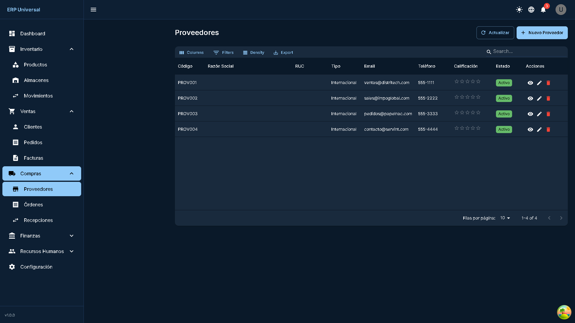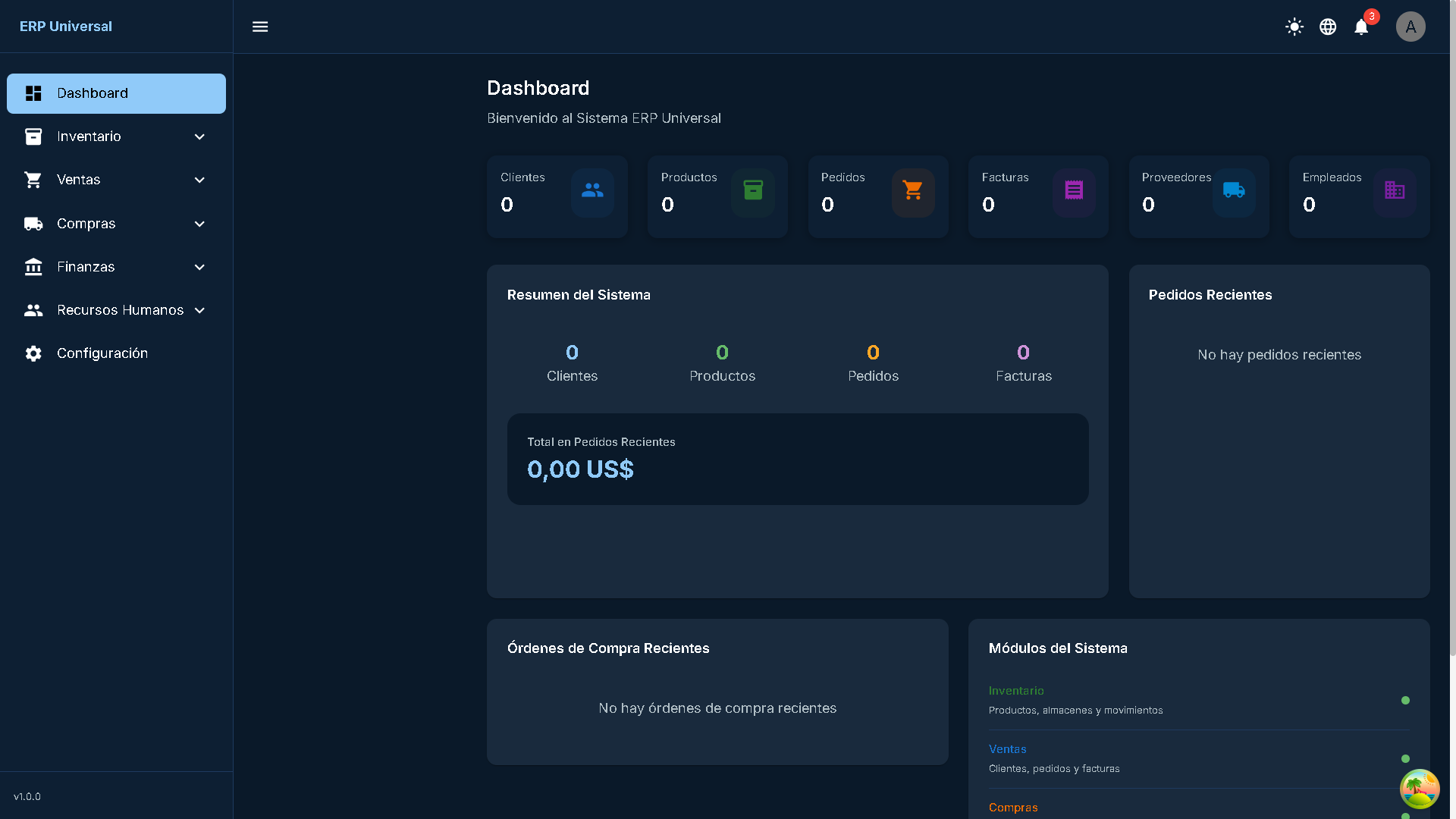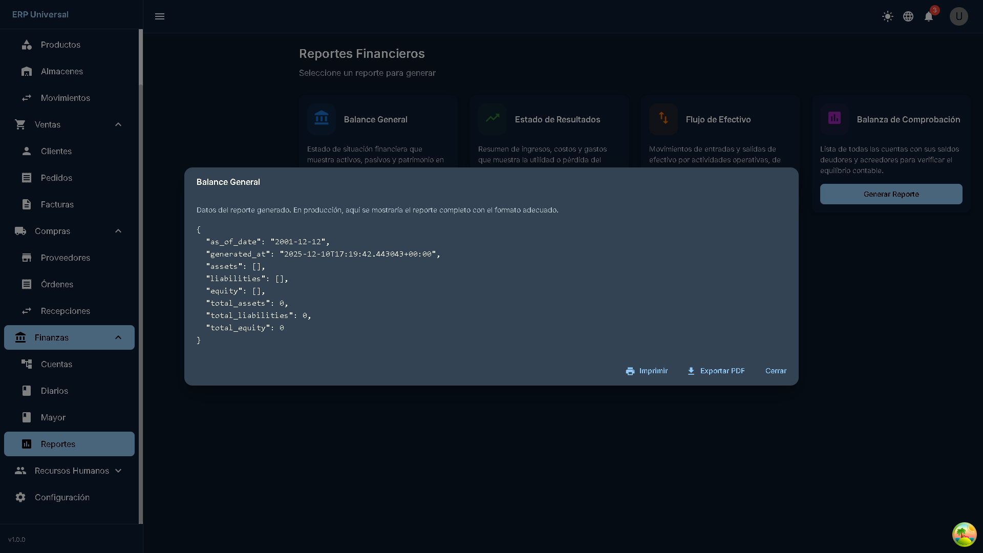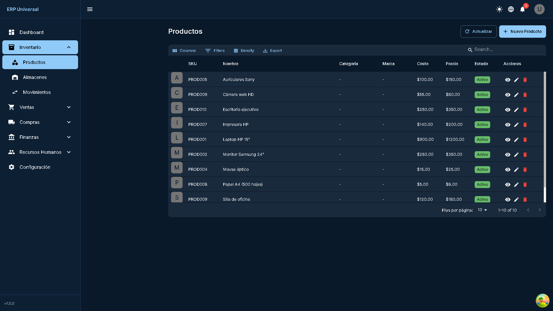 Sistema ERP Universal, una solución empresarial completa desarrollada con tecnologías modernas que permite gestionar todos los aspectos del negocio. Compatible con PC y dispositivos móviles.